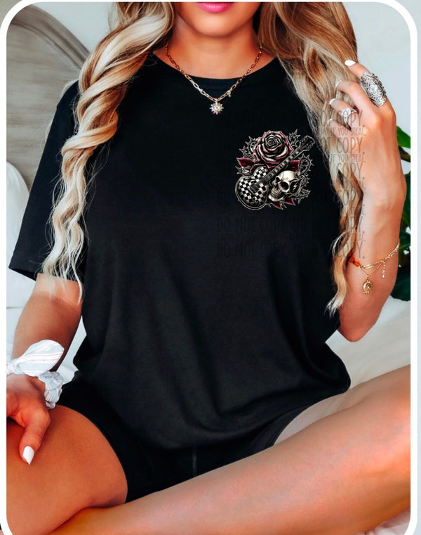Checkered guitar, rose, skull (MMD) 33055 DTF transfer