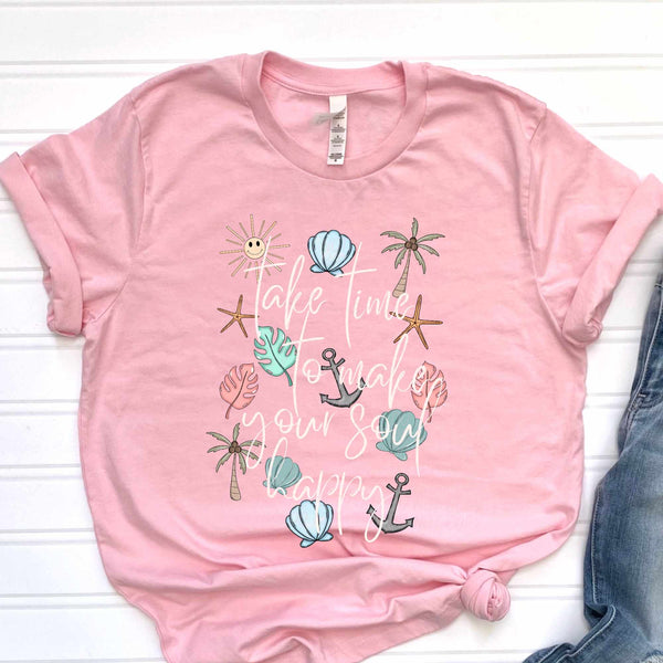 Take time to make your soul happy beach items white font (CITY) 37864 DTF transfer