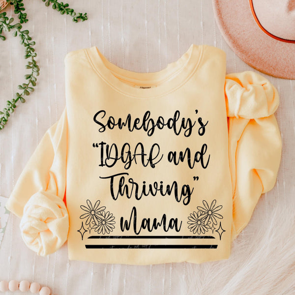 Somebody’s “idgaf and thriving” mama BLACK (VIRGO) 90790 DTF transfer