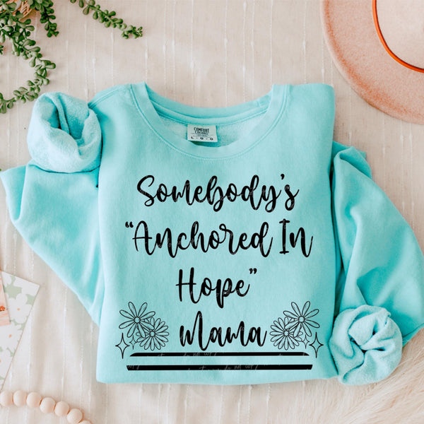 Somebody’s “anchored in hope” mama BLACK (VIRGO) 90733 DTF transfer
