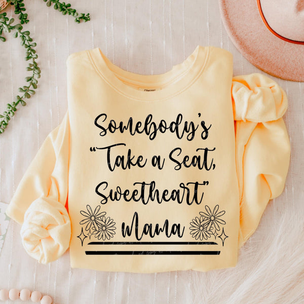 Somebody’s “take a seat sweetheart” mama BLACK (VIRGO) 90794 DTF transfer