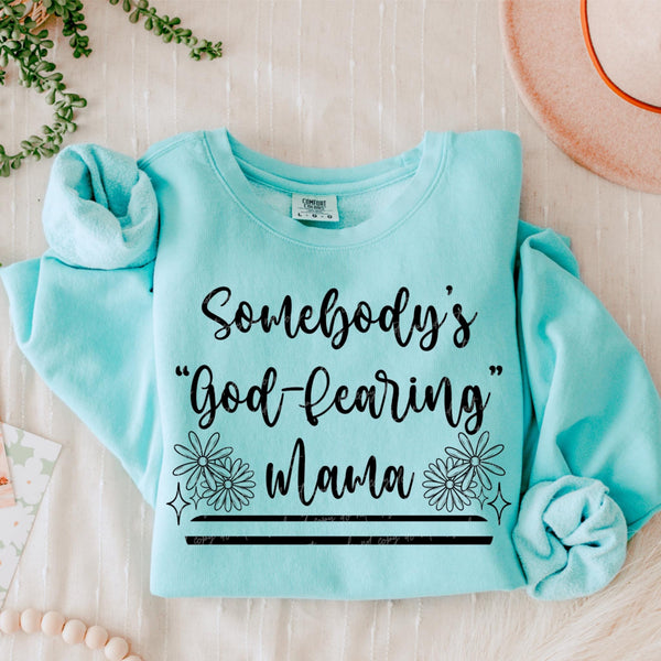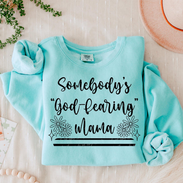 Somebody’s “god fearing” mama BLACK (VIRGO) 90728 DTF transfer