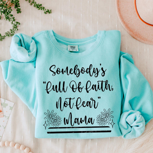 Somebody’s “full of faith not fear” mama BLACK (VIRGO) 90798 DTF transfer