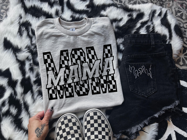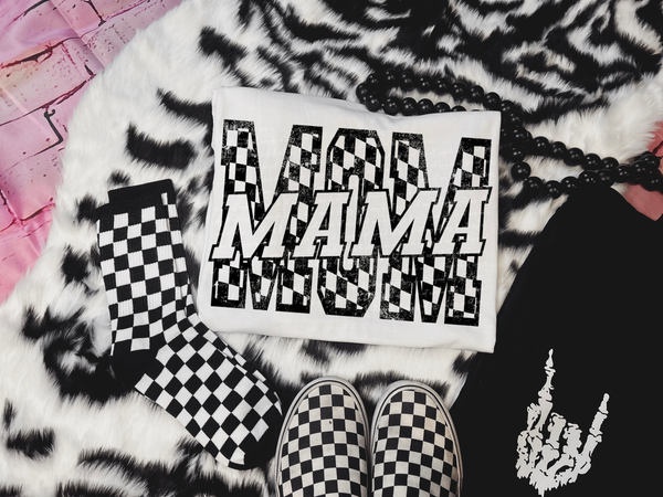 Checkered Mom Mama Varsity Font Black 86298 DTF Transfer