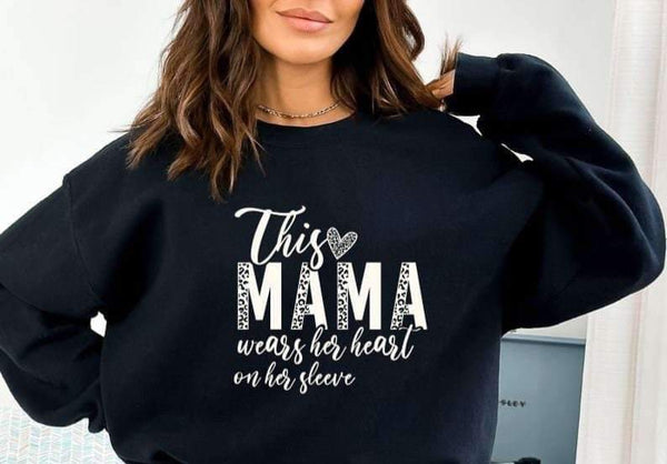 This mama wears her heart on her sleeve BLACK 20445 DTF transfer