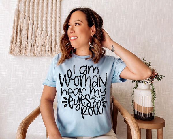 I am woman hear my eyes roll screen print transfer