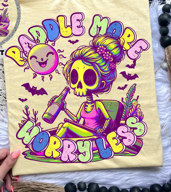 Paddle more worry less skellie drinking in kayak 32313 DTF transfer