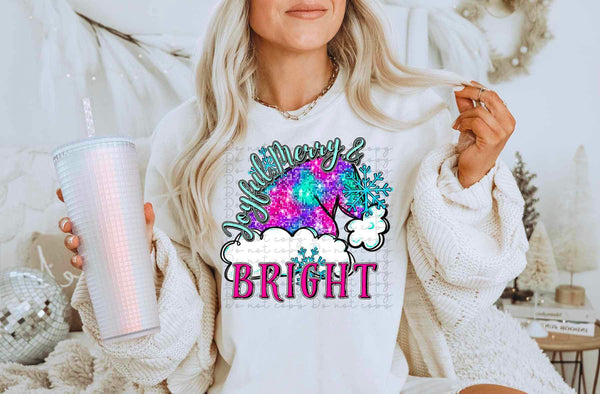 Joyful, merry, & bright multi color sequin santa hat FRONT 9760 DTF TRANSFER