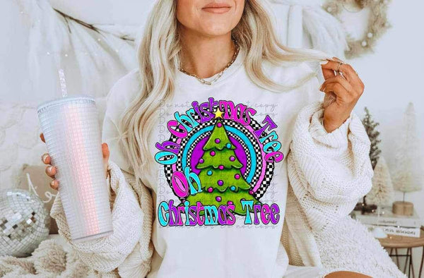 Oh Christmas tree oh Christmas tree (multi color with tree and checkered print) 9893 DTF TRANSFER