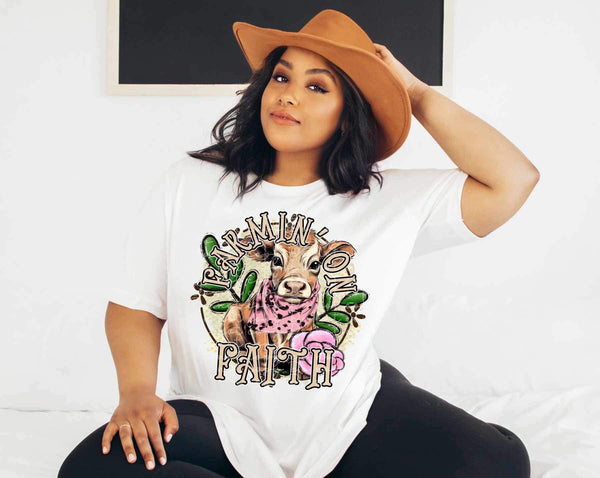 Farmin on faith (cow with pink bandana) 9412 DTF TRANSFERS