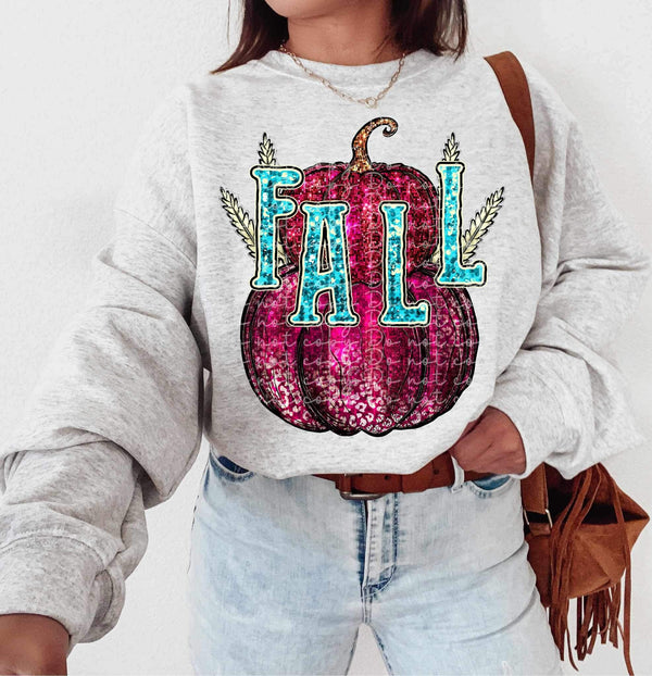 Fall (stacked pumpkin blue and pink sequin) 9403 DTF TRANSFERS