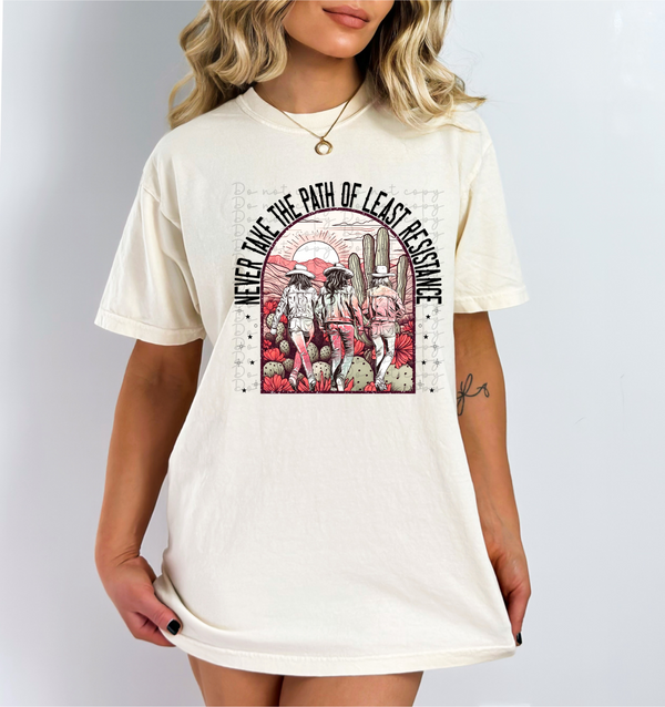 Never take the path of least resistance (3 cowgirls, western scene) 10004 DTF TRANSFER