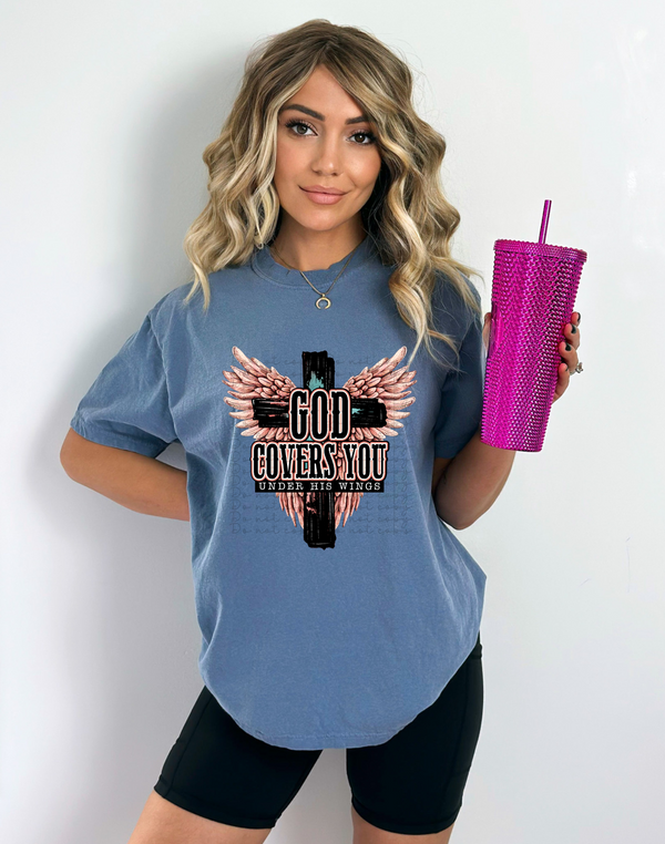 God covers you (cross with wings) 10008 DTF TRANSFER