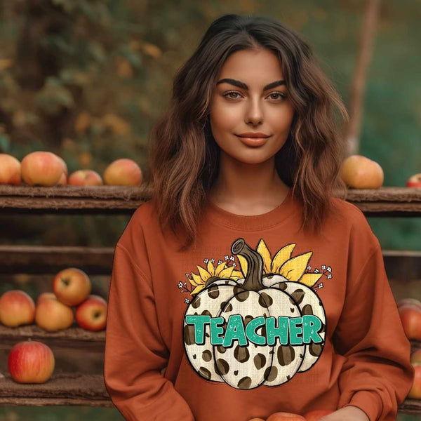 Teacher leopard pumpkin with sunflowers DTF TRANSFER