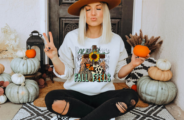 All the fall feels wooden cross with sunflower butterfly and leopard pumpkin 2465 DTF TRANSFER