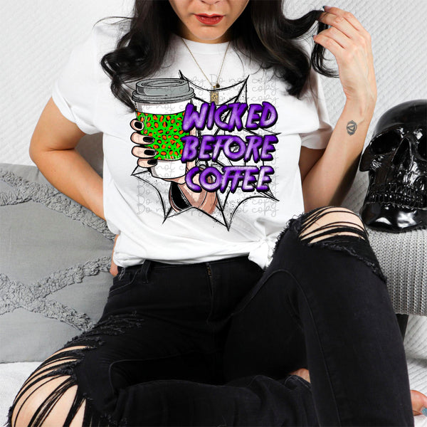 Wicked before coffee green leopard hand and spiderweb 2288 DTF Transfer
