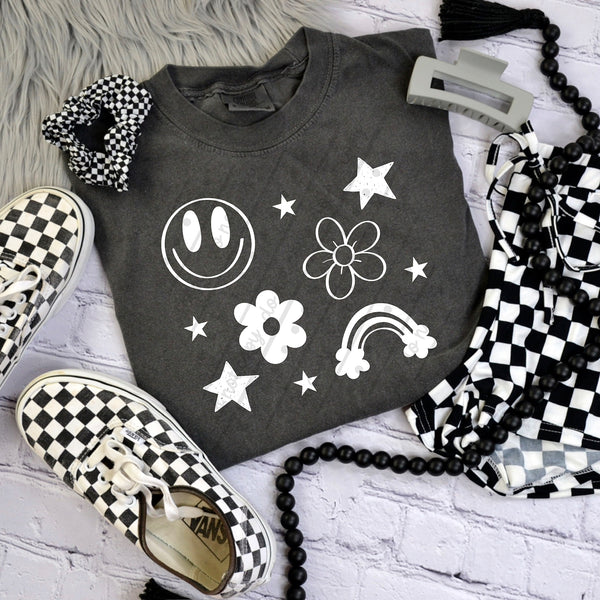 Happy doodles WHITE (scarlow) DTF transfer