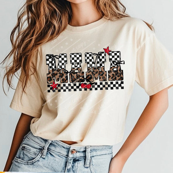 Mama cherry checker leopard (scarlow) DTF transfer