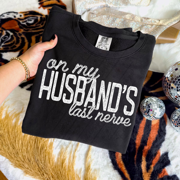 On my husbands last nerve WHITE (scarlow) DTF transfer