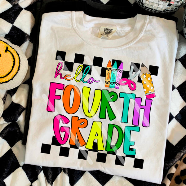 Hello Fourth Grade rainbow GIRL with star pencil 110635 DTF transfer