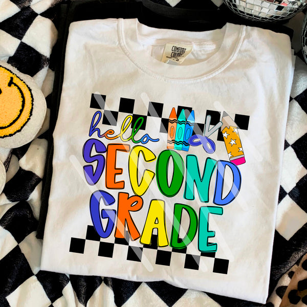 Hello Second Grade rainbow BOY with star pencil 110606 DTF transfer