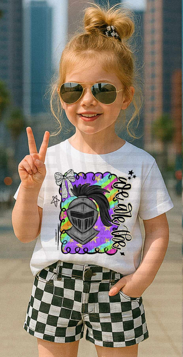 We are the Knights Preppy Swirl Mascots (Caplinger) DTF transfer