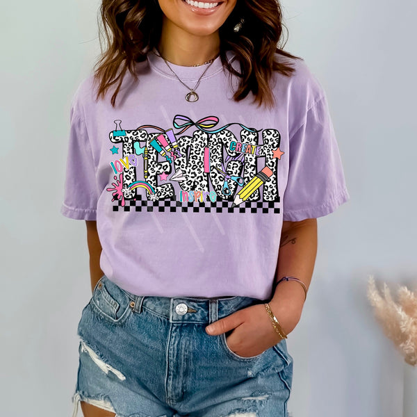 Doing Teacher Stuff flowers and checker scarlow 110319 DTF transfer