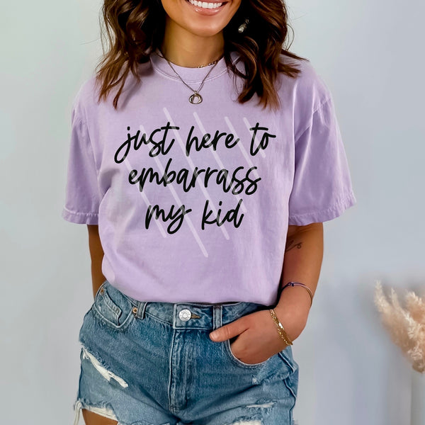 Just Here To Embarass my kids BLACK scarlow 110352 DTF transfer