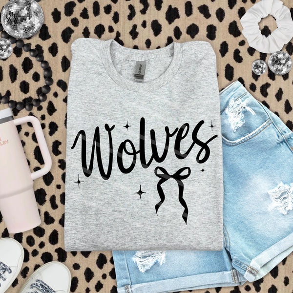 Wolves Mascot with Black Bow scarlow 110225 DTF transfer