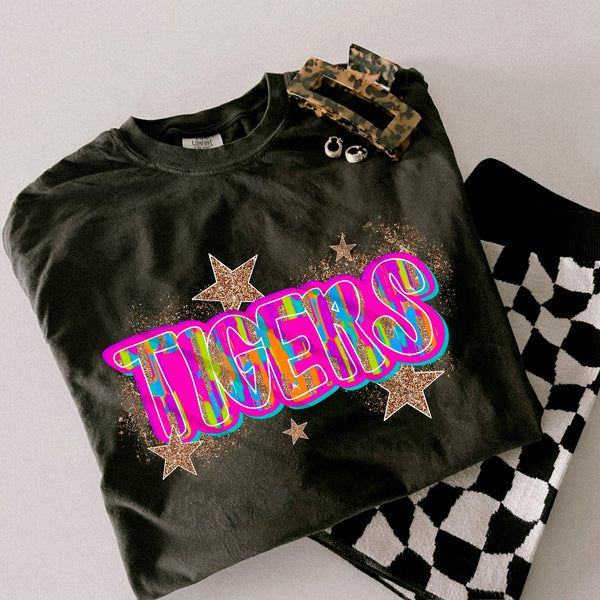Tigers Rainbow Mascot glitter gold stars scarlow 110395 DTF transfer