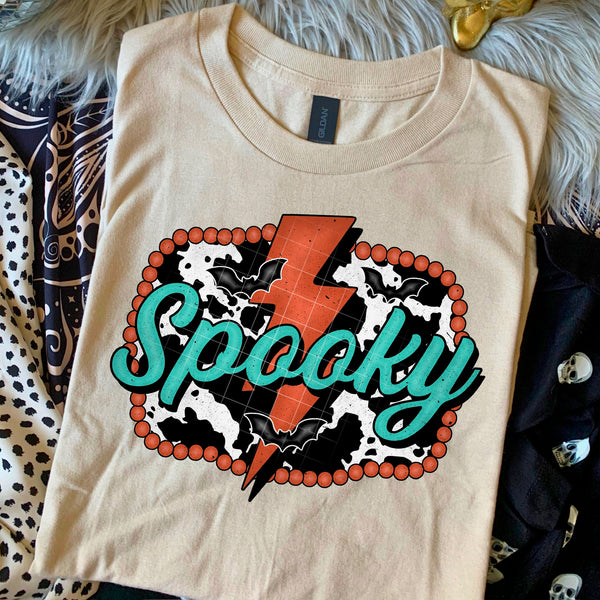 Spooky with lightning bolt and cow print 110810 DTF transfer