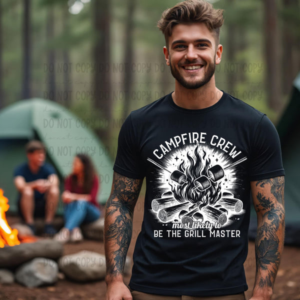 Camping crew most likely to be the grill master WHITE (Revel) 99784 DTF transfer