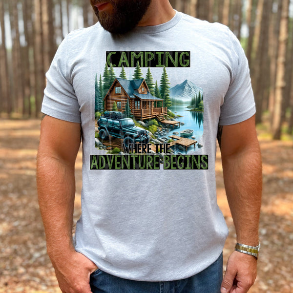 Camping where the adventure begins cabin (DD) DTF transfer