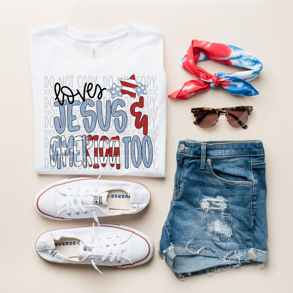Loves Jesus & America too (SWD) 101040 DTF transfer