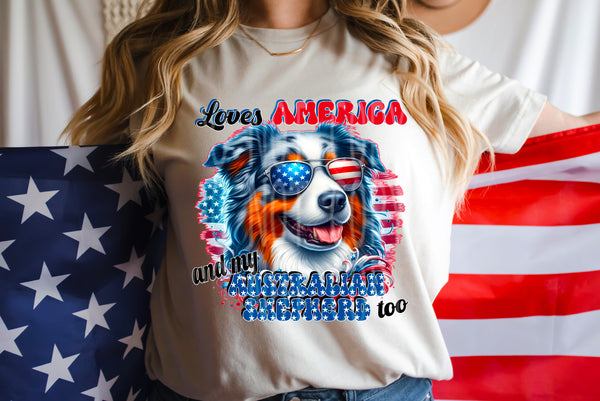 Loves America and my Australian Shepherd too (DD) 98805 DTF transfer