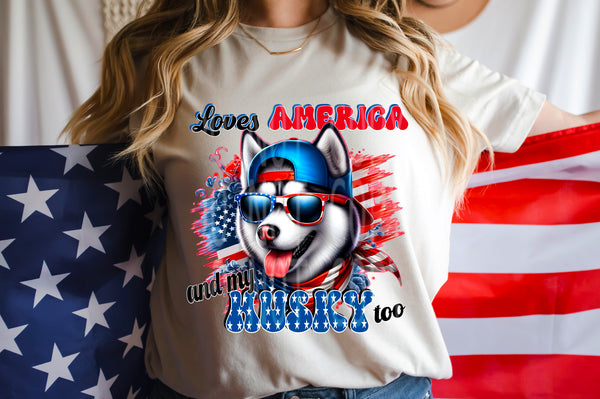 Loves America and my Husky too (DD) 98806 DTF transfer