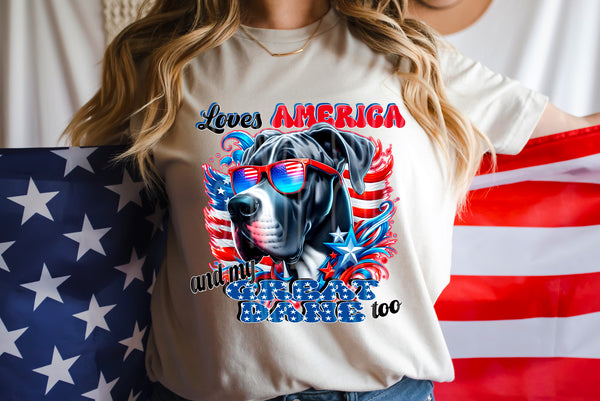 Loves America and my Great Dane too (DD) 98809 DTF transfer