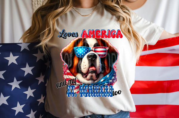 Loves America and my St. Bernard too (DD) 98813 DTF transfer