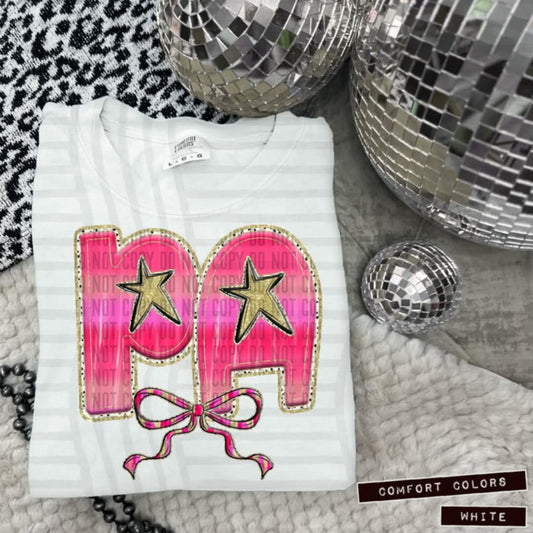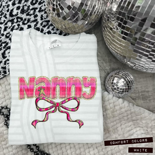 Pageant Nana Stacked Pink and Silver Bow 117804 DTF transfer
