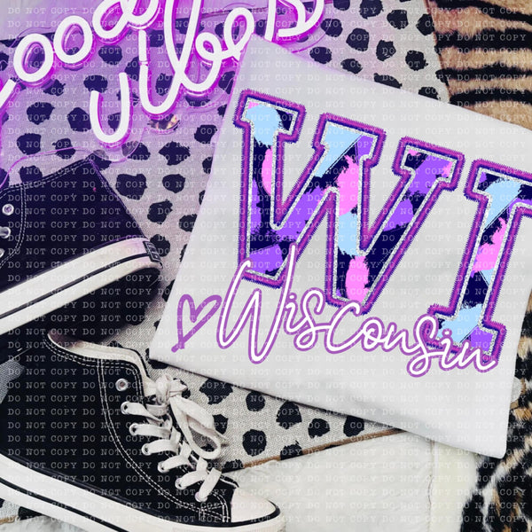 WI Wisconsin purple brushstrokes (ECHT) 94042 DTF transfer