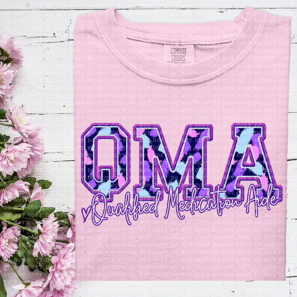 QMA qualified medication aide purple brushstrokes (ECHT) 93941 DTF transfer