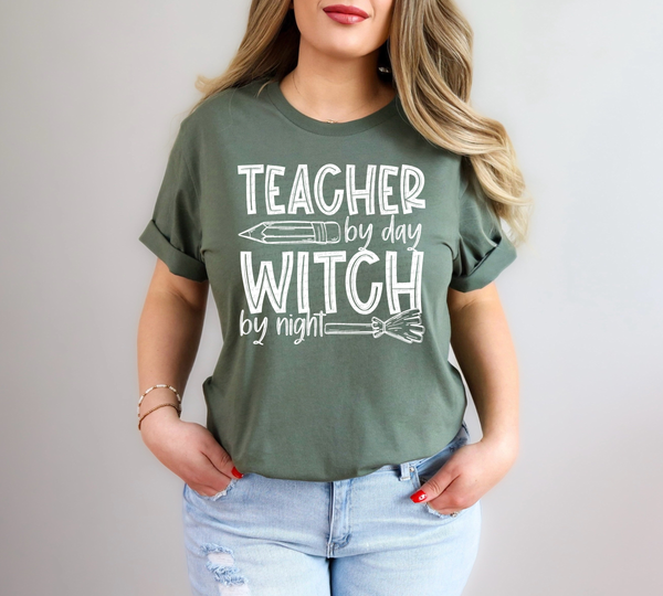 Teacher By Day Witch By Night White 89113 DTF Transfer