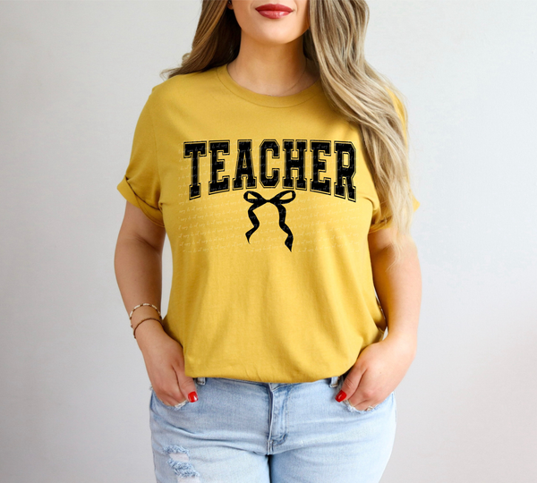 Teacher Curve Varsity Font With Bow Black 86605 DTF Transfer