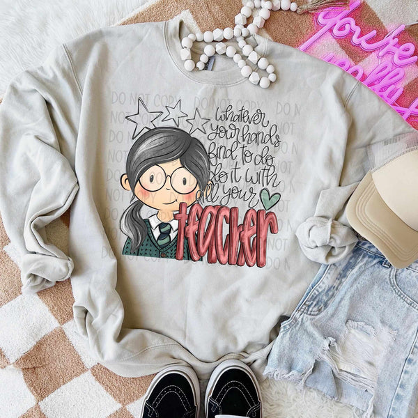 Teacher dark brown hair girl (SW) 70306 DTF transfer