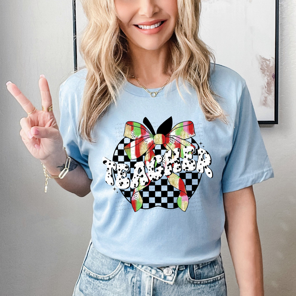 Teacher Checkered Apple Bow 69825 DTF transfer
