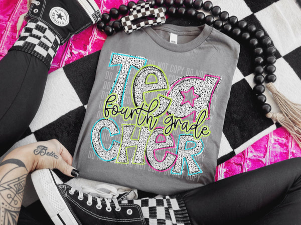 Fourth Grade Teacher Star Dots Stone 54899 DTF transfer