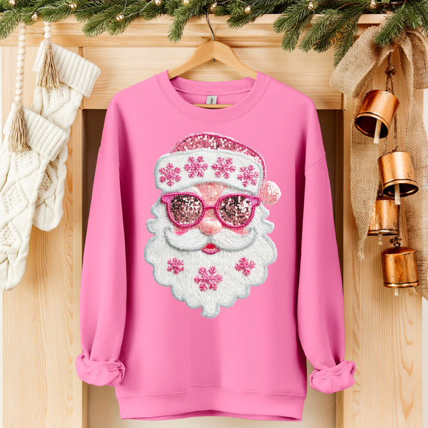 Pink faux sequin Santa with sunglasses 113334 DTF transfer