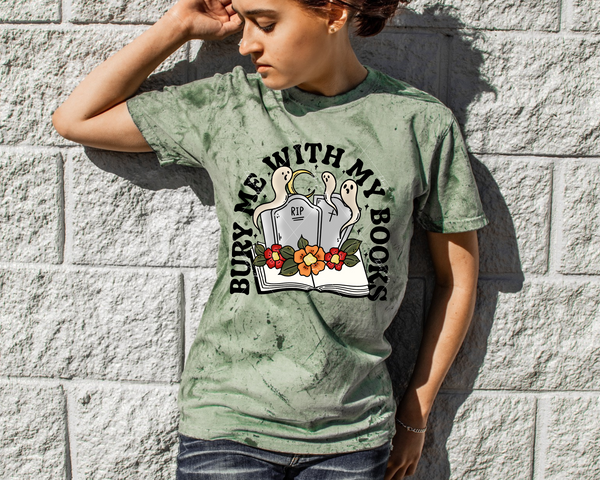 Bury Me With My Books (ghosts with orange flowers, books, headstones) 1998 DTF Transfer