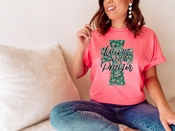 Living on a prayer Cross HIGH HEAT screen print transfer