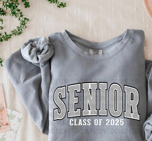 Senior class of 2025 grey varsity black outline (SW) 60296 DTF transfer